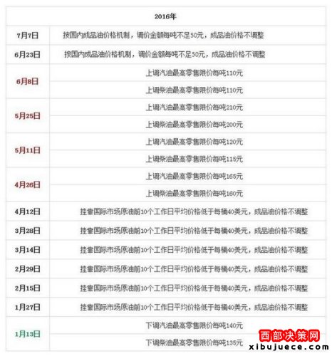 國家發(fā)改委歷次成品油價格調(diào)整匯總表。來源:隆眾石化網(wǎng)
