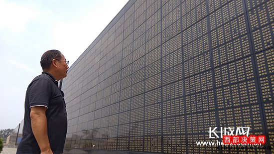 唐山大地震幸存者在地震罹難者紀(jì)念墻下緬懷逝去的親人。長城網(wǎng)記者攝