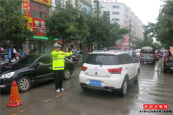 秋雨時(shí)節(jié),靖邊交警冒雨堅(jiān)守崗位