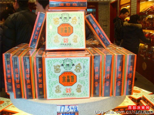 誕生:坐落在西安市西大街廣濟街口的中華老字號“德懋恭”,始建于清朝光緒年間(1872年),問世至今已有144年的歷史。清末慈禧太后來西安避難,經(jīng)過廣濟街口聞香止輦,品嘗了“德懋恭”水晶餅后大加贊賞,遂將其欽點為“貢品”,“德懋恭”水晶餅自此身價倍增,聞名遐邇。