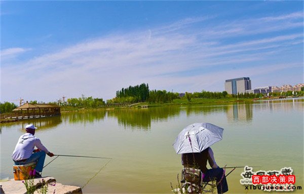 9月4日,“文博會(huì)網(wǎng)絡(luò)宣傳周”采訪團(tuán)75家媒體近百名記者一行走進(jìn)蘭州新區(qū)時(shí),就被碧波蕩漾的2號(hào)湖濱區(qū)所吸引,湖邊盛開著紅的、黃的、紫的鮮花,湖里隱約可見各種彩色的錦鯉,游人或愜意地在湖邊垂釣,或聚集在觀景臺(tái)欣賞音樂(lè)噴泉,或悠然自得地泛舟湖上。