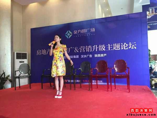 由陜西麗彩實業(yè)集團、陜西漢水廣告文化傳媒有限公司、《陜西房產(chǎn)》共同主辦的“房地產(chǎn)項目推廣與營銷升級主題論壇”,于2016年9月8日下午在咸陽金方圓廣場項目營銷中心圓滿舉辦。論壇第一輪嘉賓對話結(jié)束后,主辦單位邀請了華陰老腔藝術(shù)團成員、華陰籍姑娘屈玄登臺獻歌。(見下圖)