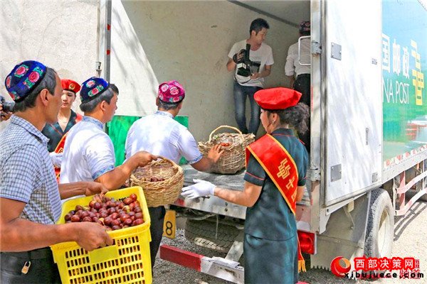 五堡鎮(zhèn)拉甫喬克村的棗農(nóng)通過(guò)郵政外銷(xiāo)大棗