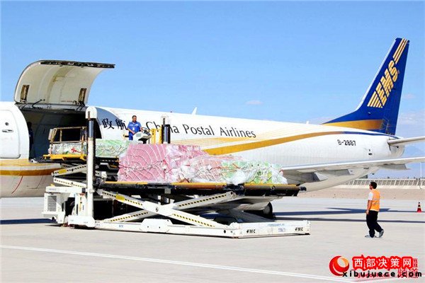 “密作”哈密古棗貢瓜正往郵政專(zhuān)機(jī)上裝運(yùn)。