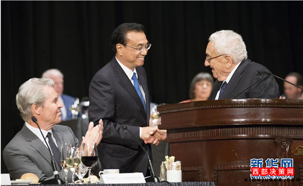 李克強(qiáng)表示,基辛格博士45年前訪華時,中美貿(mào)易幾乎為零。45年后的今天,中美貿(mào)易額占全世界貿(mào)易總量的五分之一,中美經(jīng)濟(jì)總量之和占世界經(jīng)濟(jì)總量的三分之一。我們的貿(mào)易和投資量如此之大,自然難免有分歧摩擦,但我們之間的共同利益遠(yuǎn)大于誤解和分歧。我們正在進(jìn)行的雙邊投資協(xié)定談判就是向兩國工商界發(fā)出中美進(jìn)一步擴(kuò)大相互開放和投資的積極信號。希望美方采取務(wù)實(shí)靈活態(tài)度,與中方共同努力達(dá)成高水平、互利共贏的雙邊投資協(xié)定。兩國可以通過更多貿(mào)易與人員往來,坦誠溝通,增進(jìn)理解與互信,推動中美關(guān)系朝著穩(wěn)定向好的方向繼續(xù)前行。