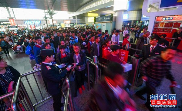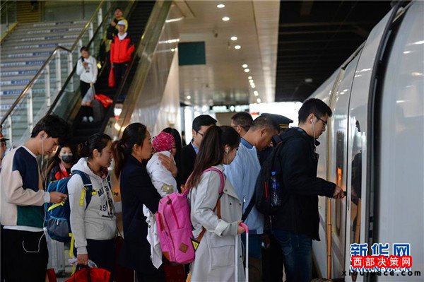 10月7日,乘客在鄭州火車站內(nèi)準(zhǔn)備進(jìn)站乘車。