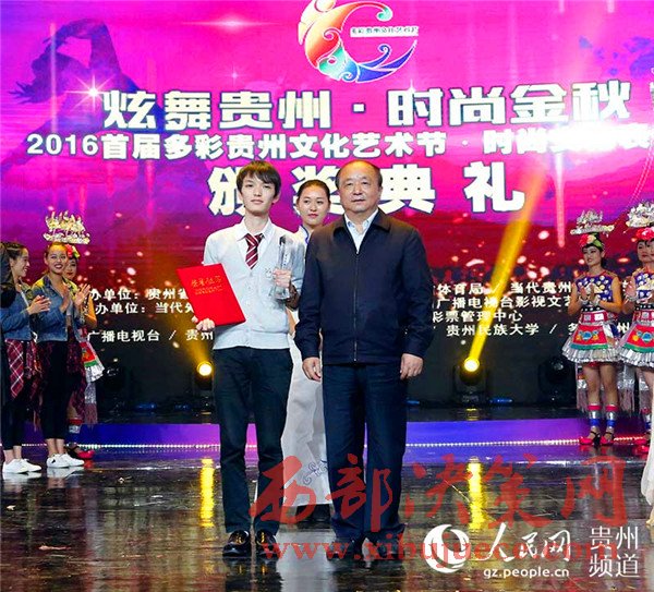 10月22日下午,2016首屆多彩貴州文化藝術(shù)節(jié)“炫舞貴州?時尚金秋”——時尚文化表演賽頒獎典禮在貴州廣播電視臺拉開帷幕。貴州省委常委、省委宣傳部部長張廣智,貴州省政協(xié)黨組副書記、副主席陳海峰等省領(lǐng)導(dǎo)出席并為獲獎?wù)哳C獎。
