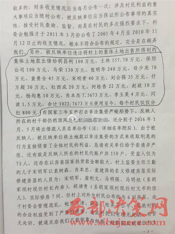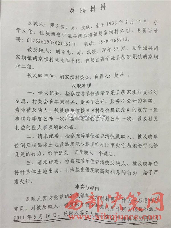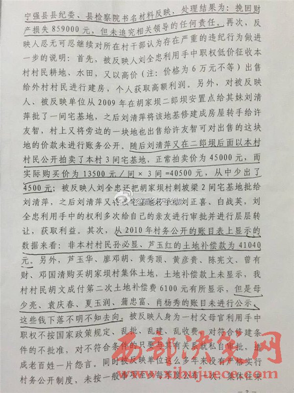 西部決策網(wǎng)訊 近日,有網(wǎng)友微博爆料,陜西省漢中市寧強(qiáng)縣胡家壩鎮(zhèn)胡家壩村,村干部劉全忠利用惠民政策,套取國(guó)家大量資金。對(duì)于國(guó)家扶貧項(xiàng)目,巧立名目、貪污、侵占村民利益。濫用職權(quán)違規(guī)審批宅基地,倒賣村集體土地,并將村上千萬(wàn)余元出借他人賺取利息,且村務(wù)不公開、賬務(wù)弄虛作假、嚴(yán)重違紀(jì)行為。