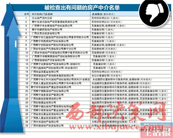 南寧市住房局通報(bào)房地產(chǎn)中介專項(xiàng)執(zhí)法檢查結(jié)果
