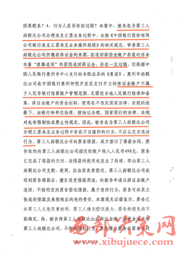 對此結(jié)果,谷奔公司并不滿意。李明告訴北京時間記者,本案的爭議焦點(diǎn)在于保證金賬戶的屬性上。“中行用非結(jié)算賬戶作結(jié)算使用就是違反國家的現(xiàn)行法律。人行惠州分行向法院出具的復(fù)函明顯態(tài)度曖昧,避重就輕,從而讓法官誤解而錯判,令人遺憾。”