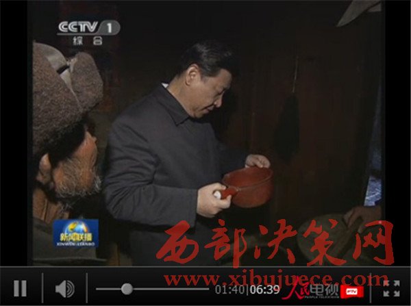 干旱缺水是制約甘肅發(fā)展的難題。2013年春節(jié)前夕習(xí)近平在甘肅考察時(shí),在貧困戶家中用瓢盛出缸中的水品嘗,詢問(wèn)糧食夠不夠吃,低保有沒(méi)有到位,看病有沒(méi)有保障,孩子有沒(méi)有學(xué)上,年貨有無(wú)備好。