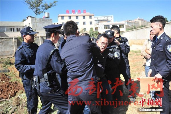 11月14日,被執(zhí)行人親屬大鬧現(xiàn)場被控制。