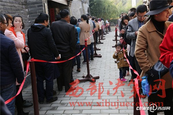 11月15日是周二,但去長(zhǎng)安區(qū)古觀音禪寺看網(wǎng)紅銀杏樹(shù)的游客還是排起了長(zhǎng)隊(duì),進(jìn)入寺廟大門(mén)跟著曲曲折折的隊(duì)伍緩緩移動(dòng)到銀杏樹(shù)前得1個(gè)來(lái)小時(shí)。在銀杏樹(shù)的圍欄里,一名工作人員用喇叭不停地提醒游客加快腳步不要停留。