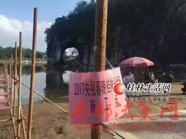 為了真正體現(xiàn)東西南北中,全民大聯(lián)歡,2017年央視春晚延續(xù)2016年春晚特色,特別設(shè)置了東西南北四大分會(huì)場,桂林憑借秀美的山水風(fēng)光和厚重的歷史文化底蘊(yùn),被確定為2017年央視春晚南方分會(huì)場。17日上午,景俊海一行來到2017年央視春晚桂林分會(huì)場外景地象山景區(qū)。象鼻山被薄霧籠罩,如夢似幻,漓江煙波渺渺,美不勝收,山水和諧相融構(gòu)成了中國南方最具代表性的自然美景。從11月12日起,春晚桂林分會(huì)場舞臺(tái)搭建工作已經(jīng)進(jìn)場,工人正在用一根根鋼管搭建水上舞臺(tái)。