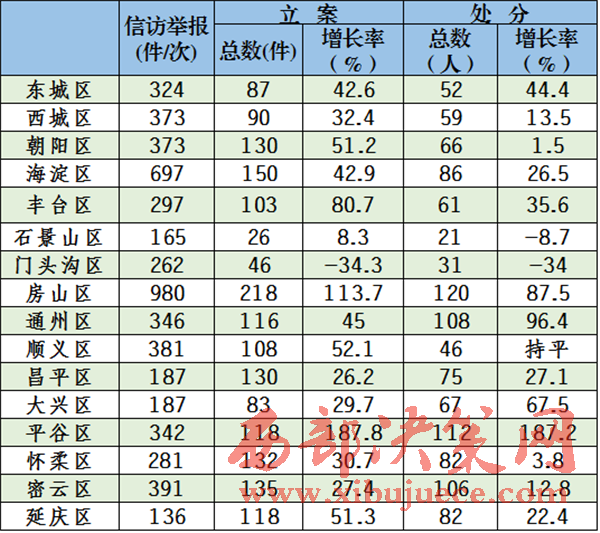 11月18日電據(jù)中央紀(jì)委監(jiān)察部網(wǎng)站消息,2016年1至10月北京市各級(jí)紀(jì)檢監(jiān)察機(jī)關(guān)共接受紀(jì)內(nèi)信訪舉報(bào)12182件(次),立案2388件。給予黨紀(jì)政紀(jì)處分1720人,其中,廳局級(jí)32人,縣處級(jí)366人,鄉(xiāng)科級(jí)345人。移送司法73人。查處違反中央八項(xiàng)規(guī)定精神和市委實(shí)施意見364人,“小官貪腐”328人。