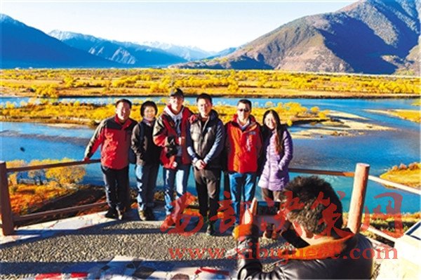 進(jìn)入11月份以來,隨著降雨量的減少,尼洋河水開始變得清澈見底,河畔大片大片的柳樹逐漸泛黃,在藍(lán)天白云的映襯下,形成了一道道秀麗的美景,十分迷人,吸引了大批游客和攝影愛好者前來游覽、攝影。圖為游客在風(fēng)景秀麗的尼洋河和雅魯藏布江交匯處合影留念。