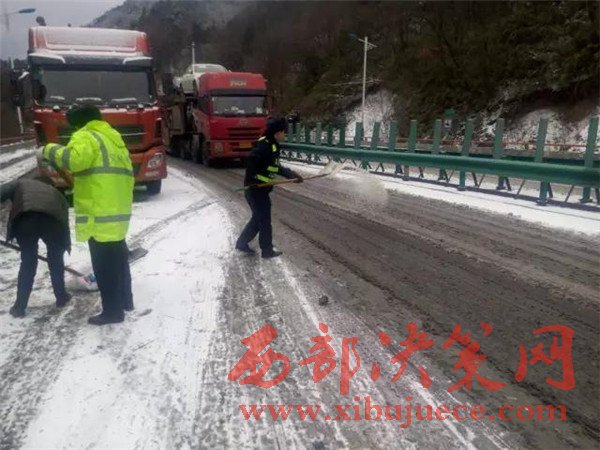 陜西高速集團(tuán)西漢分公司緊急啟動(dòng)預(yù)案,所有工作人員包括路政、養(yǎng)護(hù),消防、機(jī)關(guān)管理、收費(fèi)班倒休人員,全部上路進(jìn)行疏導(dǎo)保暢,高速集團(tuán)主要領(lǐng)導(dǎo)第一時(shí)間趕往現(xiàn)場(chǎng)指揮疏導(dǎo)。西漢分公司出動(dòng)了所有的除雪設(shè)備,撒播融雪劑和防滑沙,對(duì)造成擁堵的車輛實(shí)行緊急救援,采取生火解凍油路,路面鋪砂解決防滑,拖車清除事故車輛等方式疏導(dǎo)擁堵點(diǎn)。同時(shí)還從關(guān)中和陜南緊急調(diào)撥除雪設(shè)備和人員上路除雪,全力幫扶困在路上的車輛和人員,機(jī)關(guān)管理和收費(fèi)人員在車輛被困路段及時(shí)向被困人員解釋道路擁堵情況,積極幫助受困人員,送去了礦泉水、面包和火腿腸等應(yīng)急食品。