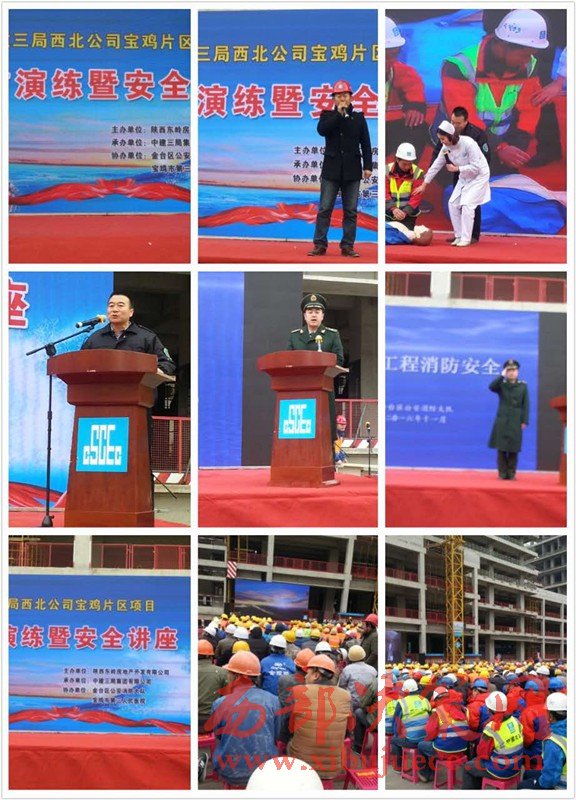 西部決策網訊(帥華鋒 李亮亮)11月24日下午,為促進施工現(xiàn)場消防安全管理,營造人人重視消防的良好氛圍,保障冬季施工安全,中建三局在寶雞中央金融文化商務區(qū)聯(lián)合舉行“冬季施工消防安全警鐘長鳴”為主題的消防安全知識講座、模擬消防急救演練,使在場的建設者們真正體會到了做好冬季施工消防安全的重要性和必要性。東嶺地產總公司各項目部、金臺消防大隊、金臺區(qū)質檢站、寶雞市第三人民醫(yī)院、全體參建單位施工人員等500余人參加了此次活動。