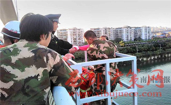 此時(shí),阿建已經(jīng)趕到橋頭,民警立即讓他先在遠(yuǎn)處等候,不要讓阿婷看見(jiàn)。通過(guò)阿建提供的電話號(hào)碼,民警聯(lián)系上了阿婷的父親,把電話撥通之后遞給阿婷,由其父親進(jìn)行勸說(shuō)。此時(shí),在旁的消防官兵綁好救生繩索開(kāi)始伺機(jī)出手。