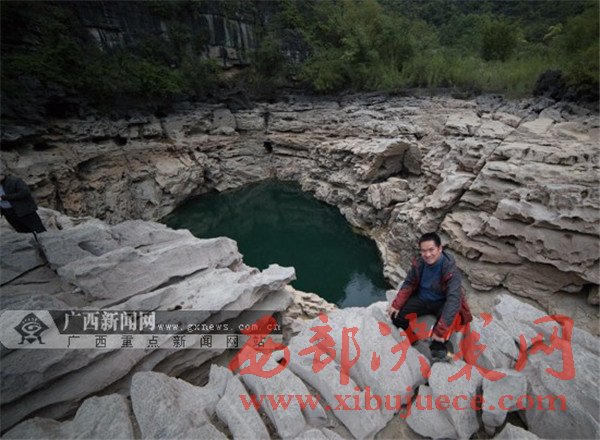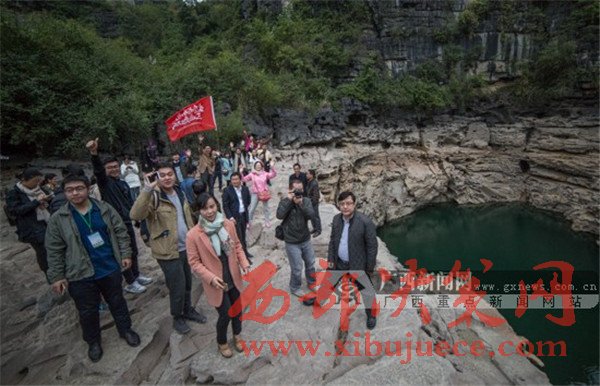 采訪團成員領(lǐng)略都安地下河天窗群風(fēng)采。