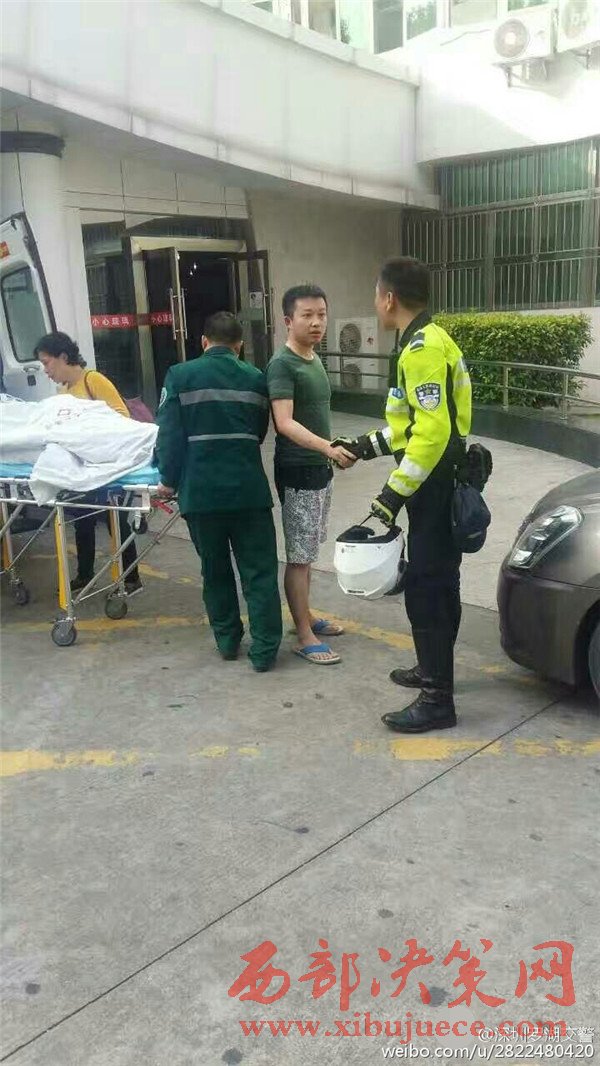 據(jù)現(xiàn)場目擊民眾@小蟲阿寶他爹:這輛救護車應該走的丹平快速隧道,交警鐵騎開路,所有的車都自覺往兩邊靠,在兩排車道中間讓出了一條救命通道。我當時就在隧道內(nèi)。圖為家屬感謝鐵騎隊員。