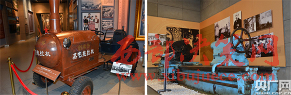 圖(左)1958年,沈陽農(nóng)業(yè)機(jī)械廠制造的新中國第一臺(tái)18馬力蒸汽拖拉機(jī)。圖(右)1959年,沈陽第一機(jī)床廠生產(chǎn)的C650型車床。