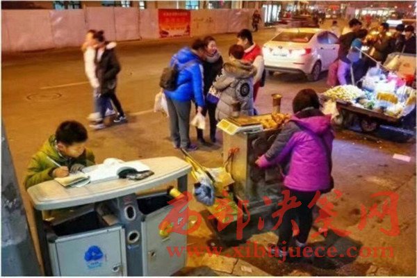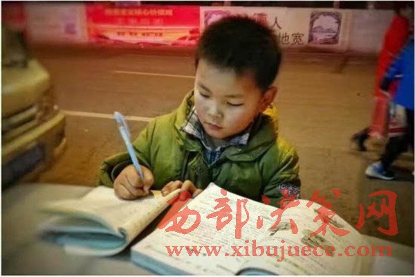 原標題:寒夜中 這個8歲男孩趴在垃圾桶上寫作業(yè)