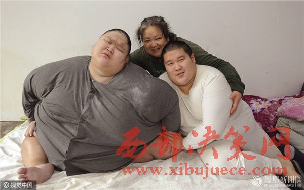 老二的生活基本能夠自理,老大張航郡卻很愁人。當(dāng)日9時(shí),老大剛剛早起。兩米寬的床,他占據(jù)了—大半。張航郡的體重至少有500斤,沒有—個(gè)秤能準(zhǔn)確地量出他的體重。腰圍九尺多,不敢說是全國(guó)最胖的,但在沈陽(yáng)絕對(duì)是第—胖。500多斤,生活中是什么樣的狀態(tài)?記者看到,張航郡家里的東西大部分是特制的。九尺多的腰,哪有賣這個(gè)型號(hào)衣服的啊?普通的衣服根本不能穿,必須特制。洗臉、上廁所這些生活基本問題都得馬女士幫助才能完成。“別看他22歲了,智力水平—直停留在1歲左右。叫‘媽媽’都是這幾年才學(xué)會(huì)的。”張航郡與馬女士的交流會(huì)用喊的方式,喊些只有馬女士才能聽得懂的語(yǔ)言。