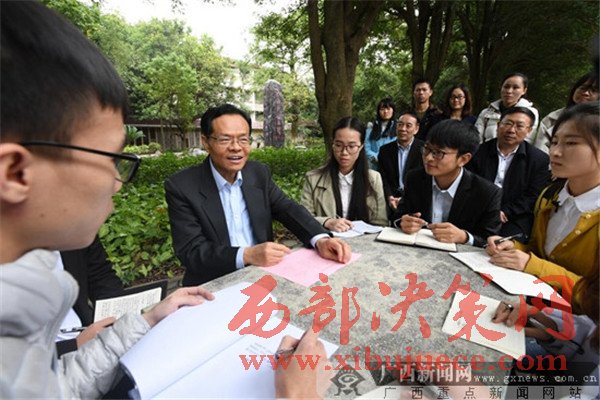 “今天來到這里,看到大家朝氣蓬勃的精神面貌,讓我回想起了38年前的大學(xué)時(shí)光。作為廣西本土培養(yǎng)的大學(xué)生,我與時(shí)代共同成長,也見證了廣西改革發(fā)展歷程。”陳武親切的開場白,迅速拉近了和青年學(xué)子們的距離。