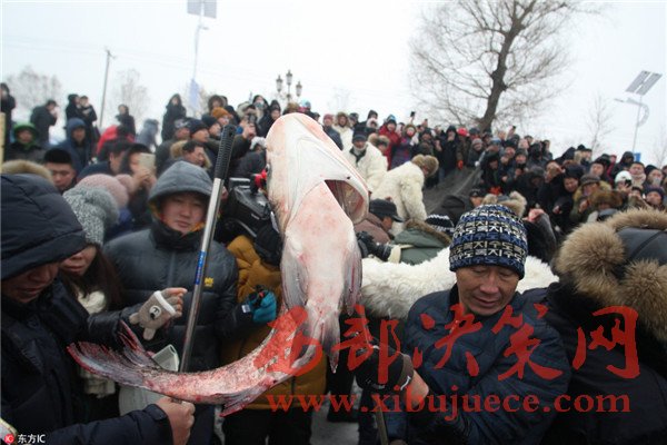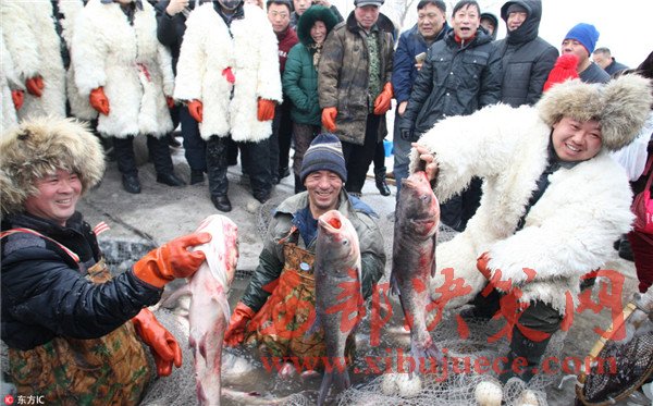 2016年12月25日,哈爾濱市長嶺湖舉行第三屆冬捕冬釣旅游節(jié)?,F(xiàn)場,漁民鑿開冰封的湖面,首網(wǎng)撈起萬余斤鮮魚,吸引了許多市民和游客前來觀看。冰面上支起大鍋,現(xiàn)場熬制鮮魚湯供人們品嘗。