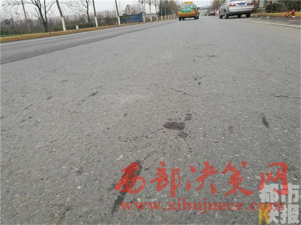 隨后,記者趕到現場。雖然現場已被處理,但是在路面上還是可以看到事故留下的斑斑血跡。