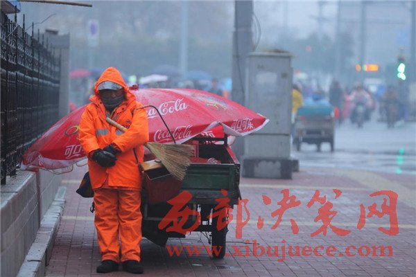 原標(biāo)題:心疼!雨雪中環(huán)衛(wèi)工抱著掃把簸箕睡著了