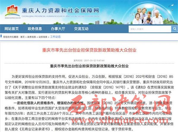 日前,市人社局會同人行重慶營管部、市財政局研究出臺了《關(guān)于調(diào)整創(chuàng)業(yè)擔保貸款政策支持創(chuàng)業(yè)就業(yè)的通知》,對借款人的資格條件進行了細化,鼓勵區(qū)縣出臺配套政策,強化對科技型企業(yè)的支持,突出扶持的差異性,還健全了貸款工作四項機制。