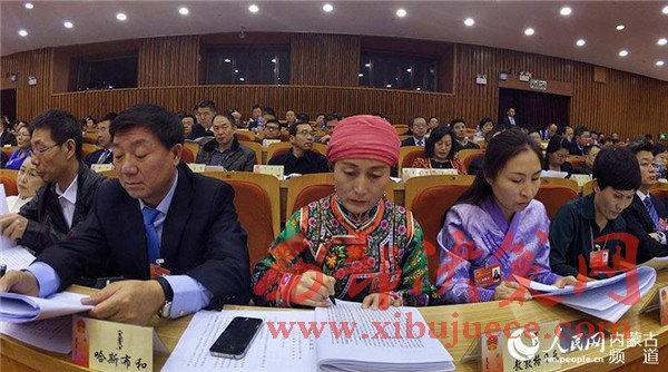 民主、團結(jié)、求實、奮進。內(nèi)蒙古人民會堂格外莊嚴,主席臺帷幕中央國徽高懸,會場氣氛隆重熱烈。
