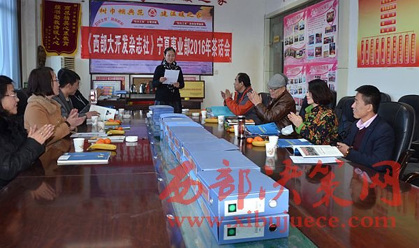 西部決策網(wǎng)訊 1月20日下午,西部大開發(fā)雜志社寧夏事業(yè)部2016年年終茶話會(huì)在銀川舉行。來自銀川電視臺(tái)、書法協(xié)會(huì)、演出協(xié)會(huì)等單位的代表們與本社寧夏事業(yè)部的工作人員匯聚一堂,為西部大開發(fā)雜志社寧夏事業(yè)部的發(fā)展建言獻(xiàn)策。