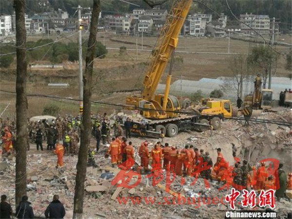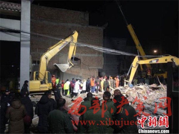 浙江文成民房坍塌現(xiàn)場(chǎng)。
