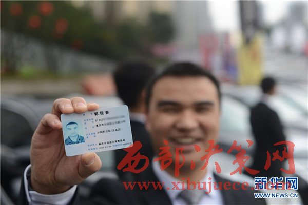 2月7日,駕駛員郭銀春展示自己的網(wǎng)絡(luò)預(yù)約出租汽車駕駛員證。當(dāng)日,重慶市道路運(yùn)輸管理局發(fā)出首批網(wǎng)絡(luò)預(yù)約出租汽車駕駛員證,64名駕駛員獲得提供網(wǎng)約車駕駛服務(wù)的從業(yè)資格。據(jù)悉,網(wǎng)絡(luò)預(yù)約出租汽車駕駛員證有效期為6年,從事網(wǎng)約車業(yè)務(wù)時(shí),需要隨身攜帶證件。