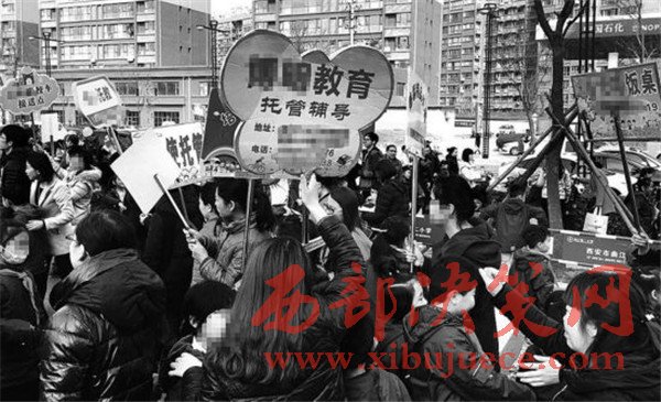 12時(shí),曲江二小門口,有很多托管班的工作人員舉著牌子,記者粗略數(shù)了一下,牌子有30多個(gè)。