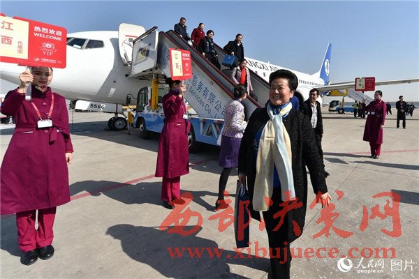 3月2日上午,出席十二屆全國人大五次會議的江西代表團乘飛機抵達北京。