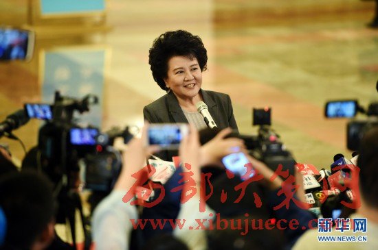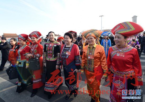 3月7日,全國人大代表申紀蘭(左)和郭鳳蓮準備參加十二屆全國人大五次會議山西代表團的會議。在兩會會場內(nèi)外,女代表、女委員、女工作人員、女記者在工作中盡職盡責,展現(xiàn)著自己的風采。