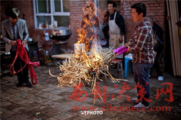 到了新郎家,也還有許多傳統(tǒng)習(xí)俗要完成,為了未來生活美滿幸福,先要驅(qū)邪避災(zāi)。