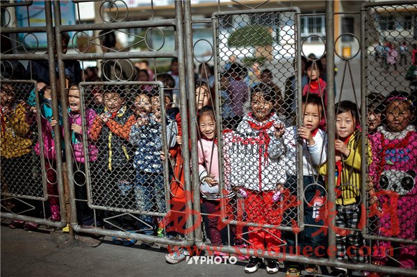 婚禮的車隊路過一所學(xué)校時,小朋友們也都趴在門上向外張望,不論誰家辦喜事,都是村里的大事了。