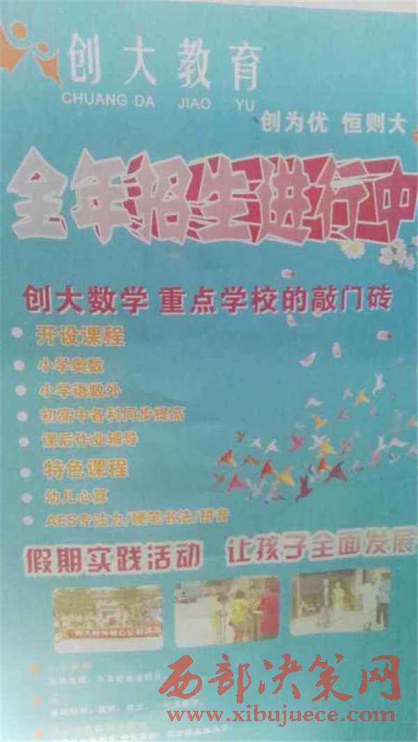 家長為了讓孩子能全面發(fā)展,常年穿梭于各類興趣、輔導(dǎo)班而樂此不疲。有的家長為了讓孩子上個(gè)好學(xué)校,托熟人、找關(guān)系,掏天價(jià)送孩子上所謂的名優(yōu)輔導(dǎo)機(jī)構(gòu),而實(shí)際上實(shí)屬無奈,敢恨不敢言,這一現(xiàn)象不得不讓人深思……!實(shí)際情況到底怎樣?本社工作人員根據(jù)群眾反映近期對一家名為“創(chuàng)大教育”的輔導(dǎo)班進(jìn)行實(shí)地了解,結(jié)果讓人大跌眼鏡。