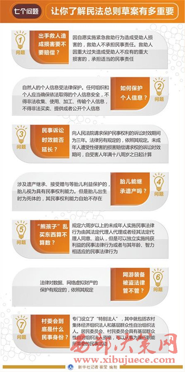 民法總則就民法基本原則、民事主體、民事權利、民事法律行為、民事責任和訴訟時效等基本民事法律制度作出規(guī)定,構建了我國民事法律制度的基本框架,為編纂民法典奠定了基礎。