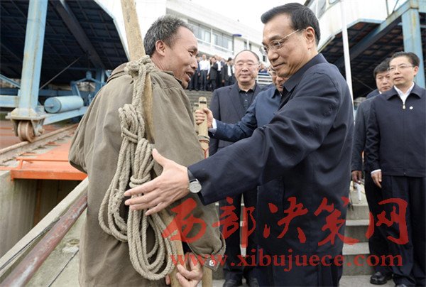 2014年4月27日,李克強(qiáng)在萬(wàn)州港碼頭與重慶的“棒棒”交流。