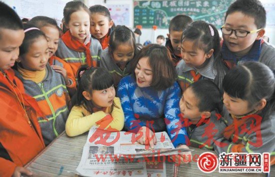 3月17日,在市第73小學三(6)班,班主任楊蓉和同學們一起學習習近平總書記在參加十二屆全國人大五次會議新疆代表團審議時的重要講話精神。