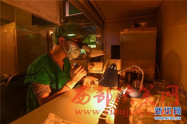 3月20日,廣醫(yī)三院胚胎實驗室人員詹少泉在顯微鏡下?lián)斐龌颊呔栀浀穆炎印?/span>
