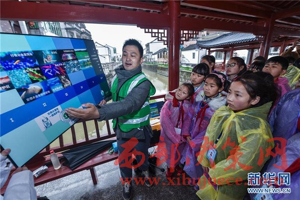 3月22日,織里鎮(zhèn)漾西小學(xué)的孩子們?cè)卩l(xiāng)鎮(zhèn)巡河員及水質(zhì)監(jiān)測(cè)員的陪同下,學(xué)習(xí)水樣采集、排污勘測(cè)等方面的知識(shí)。這些孩子都是當(dāng)?shù)氐?ldquo;小小河長(zhǎng)”,定期負(fù)責(zé)相關(guān)河道的水質(zhì)監(jiān)控。當(dāng)日是第二十五屆“世界水日”,浙江省湖州市吳興區(qū)織里鎮(zhèn)的鎮(zhèn)級(jí)河長(zhǎng)、民間巡河員帶著漾西小學(xué)的“小小河長(zhǎng)”們?cè)诔?lè)村邵洋里河沿線對(duì)河面、河岸保潔情況進(jìn)行勘察、記錄。工作人員還給這些“小小河長(zhǎng)”們上了一堂水質(zhì)監(jiān)測(cè)環(huán)保課,并現(xiàn)場(chǎng)采集水樣進(jìn)行比對(duì),增強(qiáng)相關(guān)理論和實(shí)踐知識(shí)。近兩年來(lái),織里鎮(zhèn)全面推進(jìn)“河長(zhǎng)制”,積極探索治水新模式,在退休干部、黨員、童裝業(yè)主、學(xué)生等各類群體中創(chuàng)設(shè)一批“黨員河長(zhǎng)”“青年河長(zhǎng)”“小小河長(zhǎng)”等,盡可能讓更多的人參與到河道整治、水體治理的工作中。