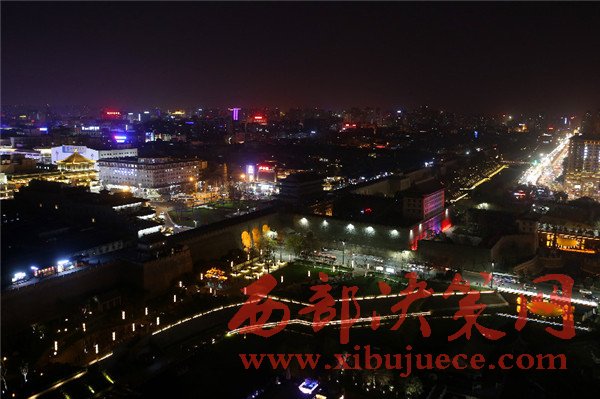 在鐘樓、鼓樓、大雁塔、長(zhǎng)安塔等標(biāo)志性建筑物熄燈后,西安城墻不例外,城墻南門(mén)熄燈一小時(shí),周邊商場(chǎng)以及飯店也都相繼熄燈。