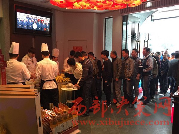 在現(xiàn)場記者看到,旺順閣魚頭泡餅門口工作人員指引的士司機們到指定車位,兩邊迎賓工作人員熱情接待每位到來的賓客。陸續(xù)到達的出租車已有近百輛,有序的一字排開,個個的哥臉上洋溢著燦爛的笑容,暢談寒暄,快樂的等待著。中午12時,旺順閣魚頭泡餅西安財富中心店總經(jīng)理呂貴朋女士宣布活動正式開始。